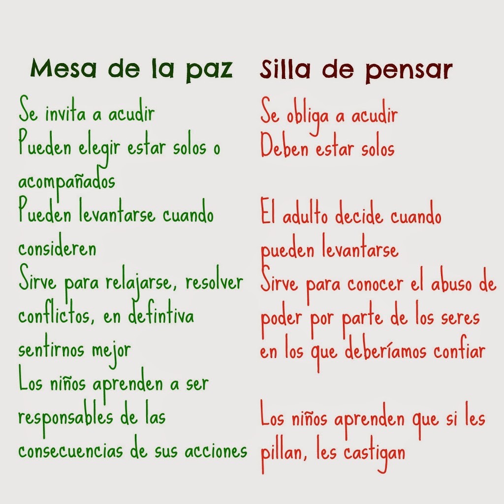 Pueden ir a la mesa de la paz a hablar entre ellos para encontrar una solución y conseguir la paz de nuevo. Lo bonito de esto es que los niños consiguen resolver el problema ellos solos, sin intervención del adulto, y ello conlleva a que adquieran herramientas de habilidades sociales e inteligencia emocional, especialmente empatía e incluso autoestima.